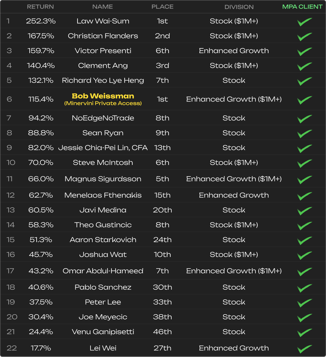 Unlock exclusive access to Minervini Markets 360—the same powerful, fully integrated platform Mark uses to achieve superperformance, built for precision, speed, and seamless workflow.